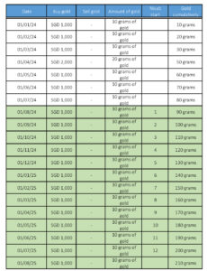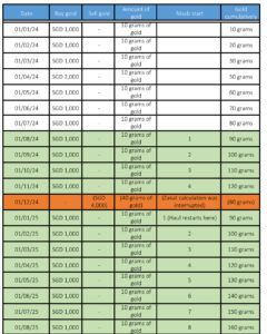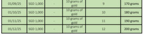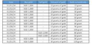 - Explanation for Table 6: Assuming that Muhammad buys gold regularly every month starting from 1 January 2024, gradually increasing his total gold holdings