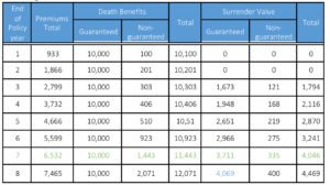- At the end of year 8, the total surrender value is SGD 4,069, which is above the Nisab of SGD 4,000.